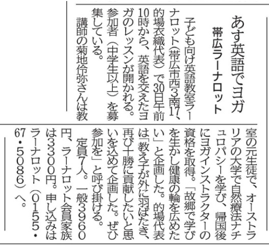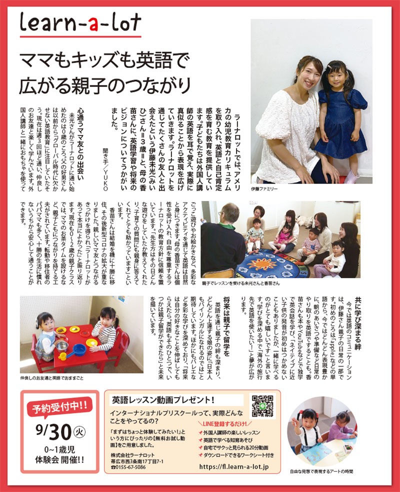 新聞・情報誌で紹介されました 2024-25年 2023年 2022年 2021年 2020年 2019年 2025年9月号 十勝の生活応援マガジンChai 2025年7月29日 十勝毎日新聞 2024年9月号 十勝の生活応援マガジンChai 2024年1月16日 十勝毎日新聞 2023年9月号 十勝の生活応援マガジンChai 2023年4月8日 十勝毎日新聞 2023年3月号 十勝の生活応援マガジンChai 2023年1月23日 十勝毎日新聞 2023年1月13日 十勝毎日新聞 2022年3月号 十勝の生活応援マガジンChai 2021年9月14日 十勝毎日新聞 2021年7月24日 十勝毎日新聞 2021年3月1日 帯広柏葉高等学校同窓会々報 2021年1月3日 十勝毎日新聞 2020年9月号 生活情報誌 月刊しゅん 2019年4月6日 十勝毎日新聞 2019年3月31日 十勝毎日新聞 2019年1月19日 十勝毎日新聞 十勝の子育てママを応援するフリーマガジン ぺこぐぅ 2019 春号 vol.17